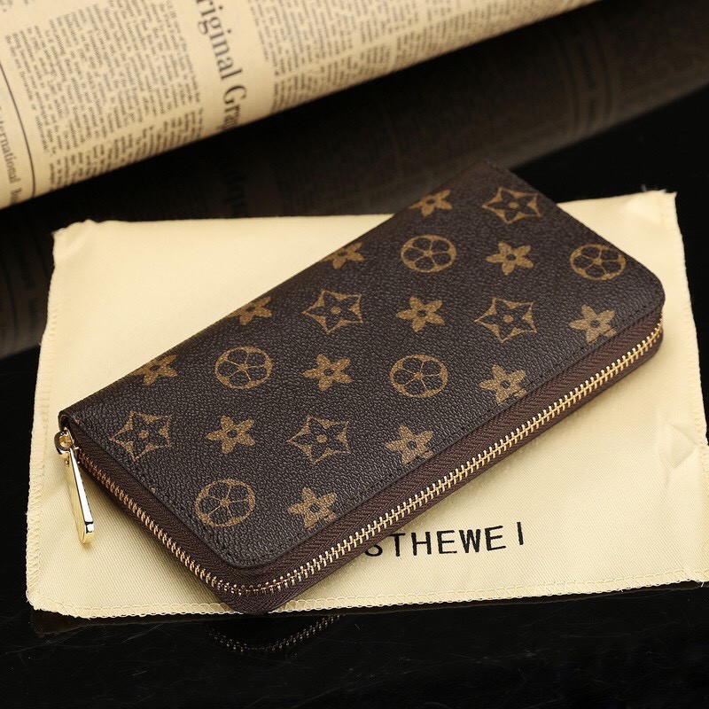 Ví Nam Nữ Cầm Tay Dài LV Hoa Nâu, ô nâu và hoa đen free ship